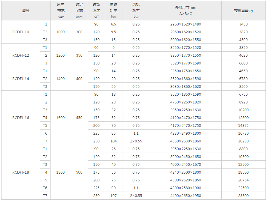 RCDFJ型强迫油循环自卸式电磁除铁器适用于输煤港口、大型火电厂、煤矿等对除铁要求特别高的场所。用于悬挂在大型输送皮带上方,能处理煤中炮线等细小铁件,对处理杂铁,提高物料品位起到重要的作用,自动卸铁,维护简便,滚筒腰鼓形结构,具备自动纠偏功能,特制全密封轴承座,能够适应现场粉尘大的应用场合。