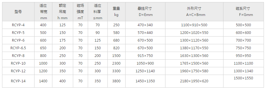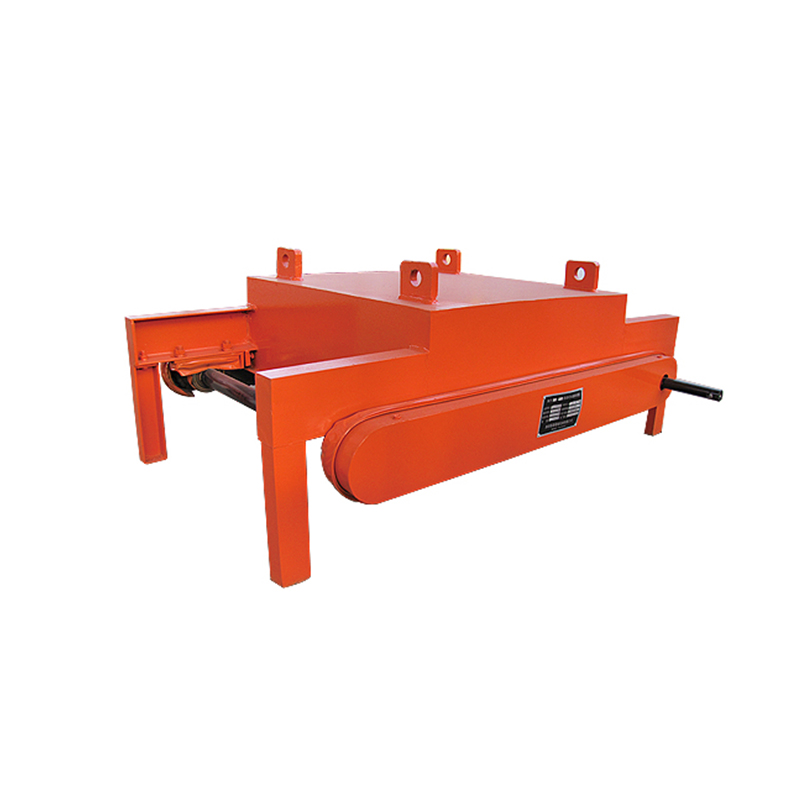 RCYP型永磁手动自卸式除铁器适用于输料皮带窄,物料薄,含杂铁少的场合。本机结构简单,运行可靠,经济实用,免维护,无任何噪声。