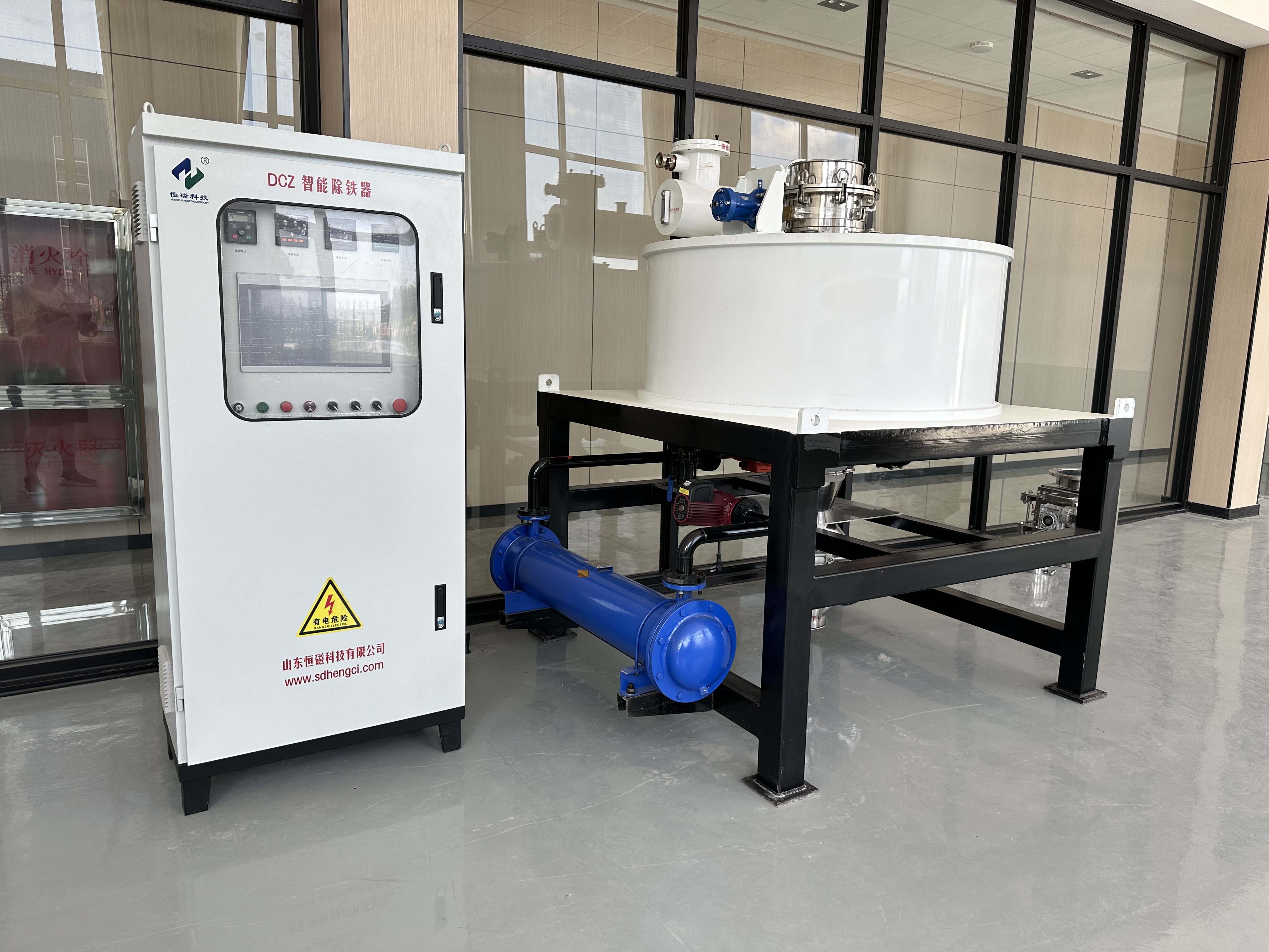 DCZ型电磁干式自动磁选机适用于去除经过10-500目的各种粉末状物料,如陶瓷粉料、石英砂、钾长石、铝矾土等矿粉、化工、电子、食品等行业的粉料中的铁磁性物质。
