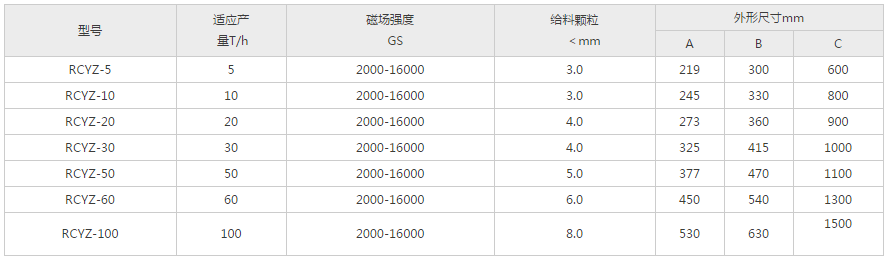RCYZ型垂直管道式永磁除铁器是一种以永磁材料产生强大磁场吸引力的节能型设备,内部采用钕铁硼材料组成的环状磁系,圆锥形体,结构合理,磁场强度高。可与固态原料输送设备连接,活动式门扣,处理铁质方便,适用于食品、面粉、陶瓷、化工、水泥、建材、石英砂等行业各类固态小颗粒和粉末状物料中除铁。